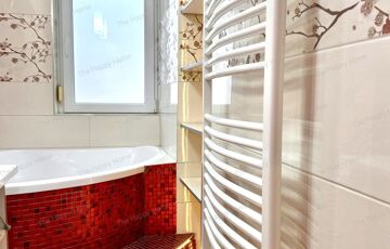 - Minőségi hideg–meleg burkolatok minden helyiségben